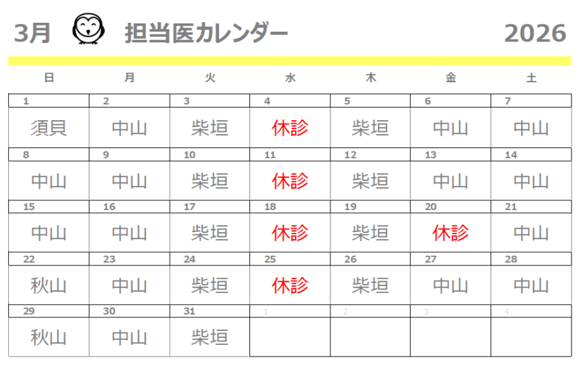 3月の担当医カレンダー